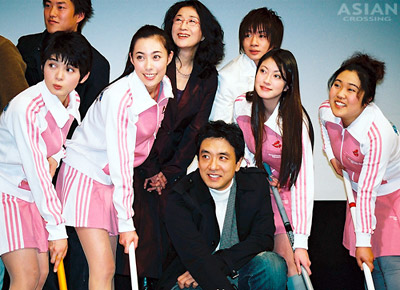 カーリング・エンジェルズ(左より占部房子、吹石一恵、関めぐみ、枝元萌)とキム・スンウ